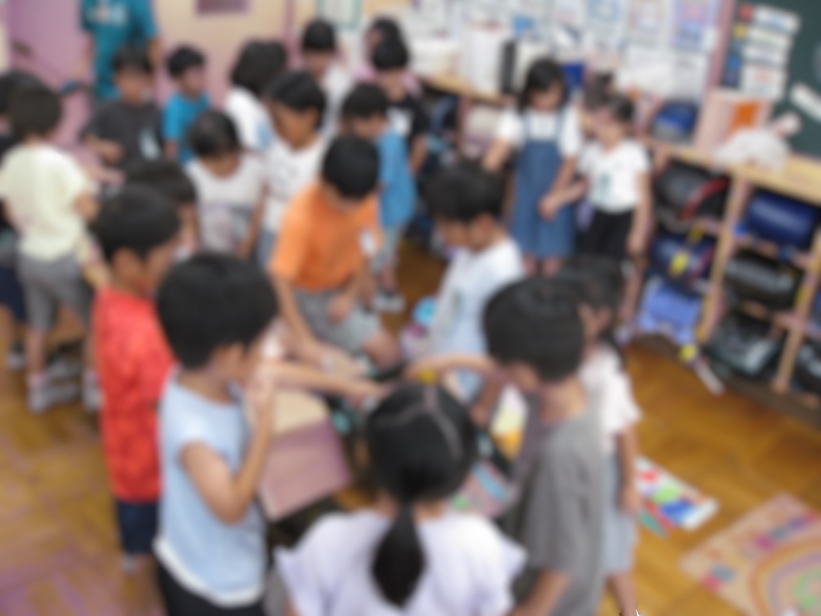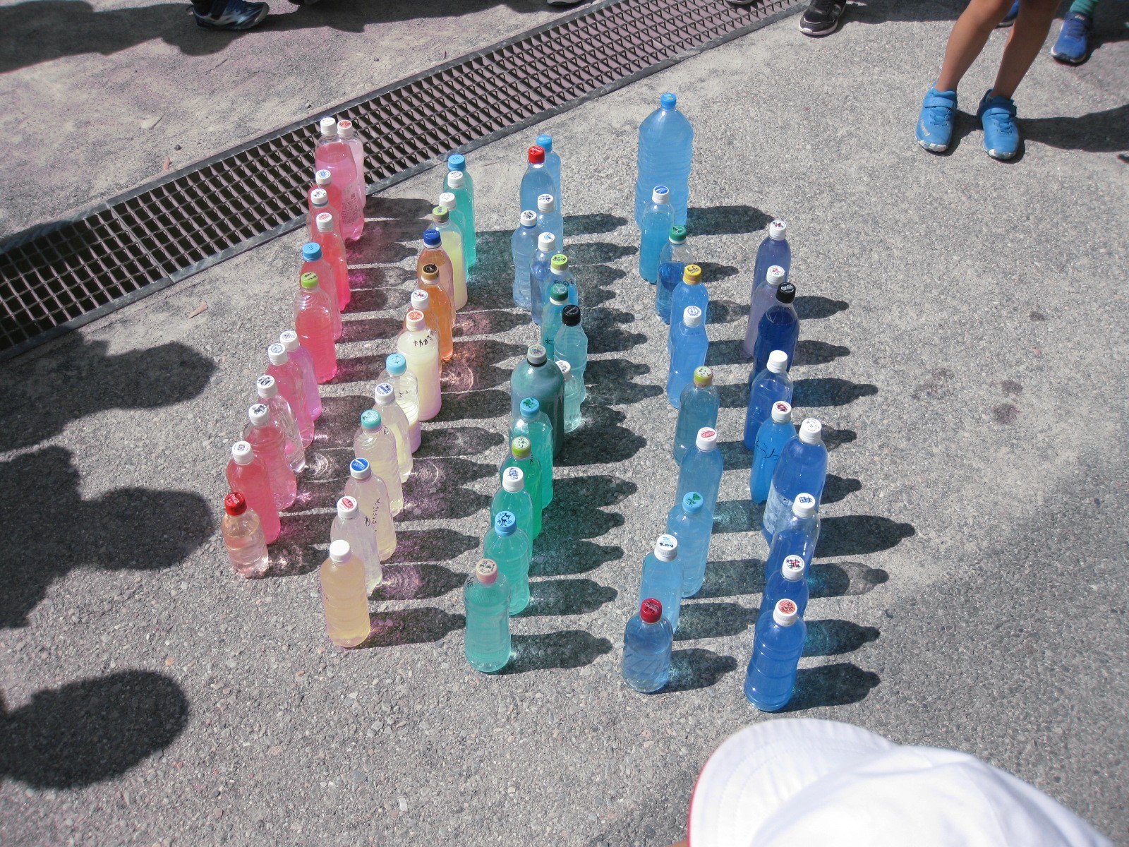 図工では、色水を作ってみんなで並べてみたり、透かしてみたりして