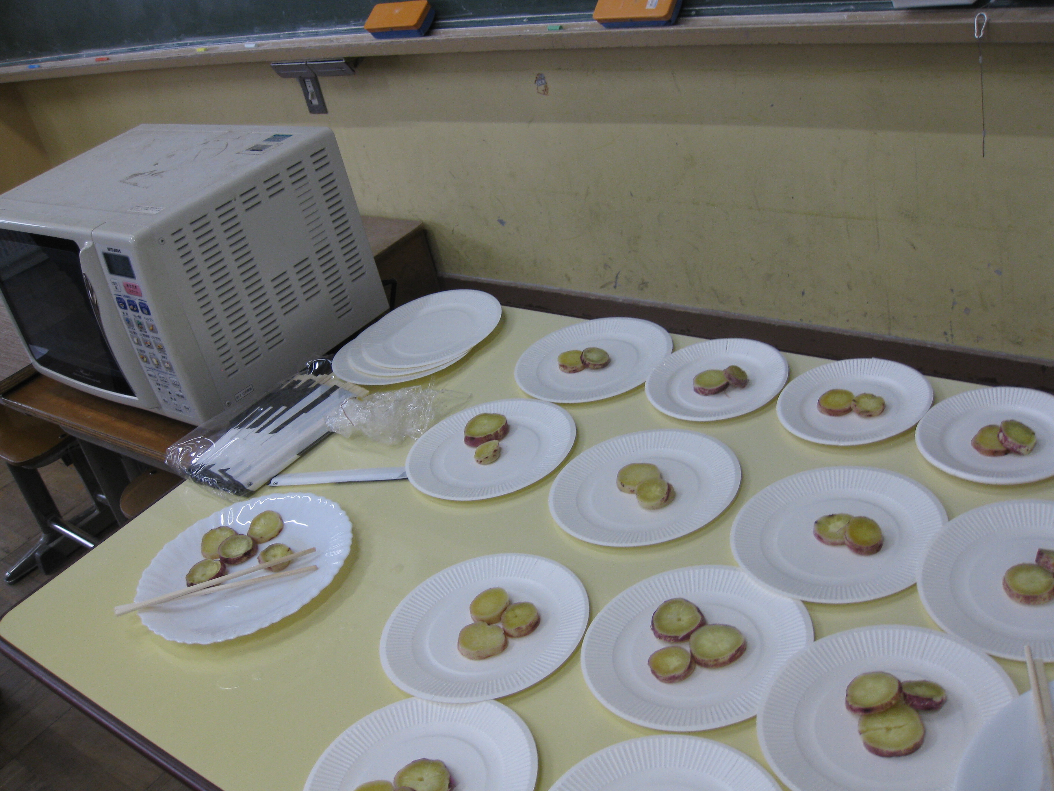31日(金)には収穫したさつまいもを電子レンジで蒸して味見をしました。