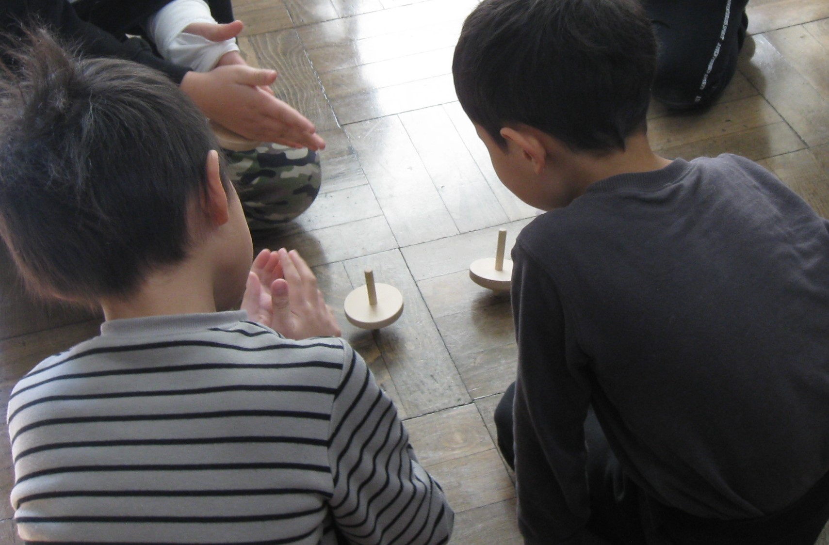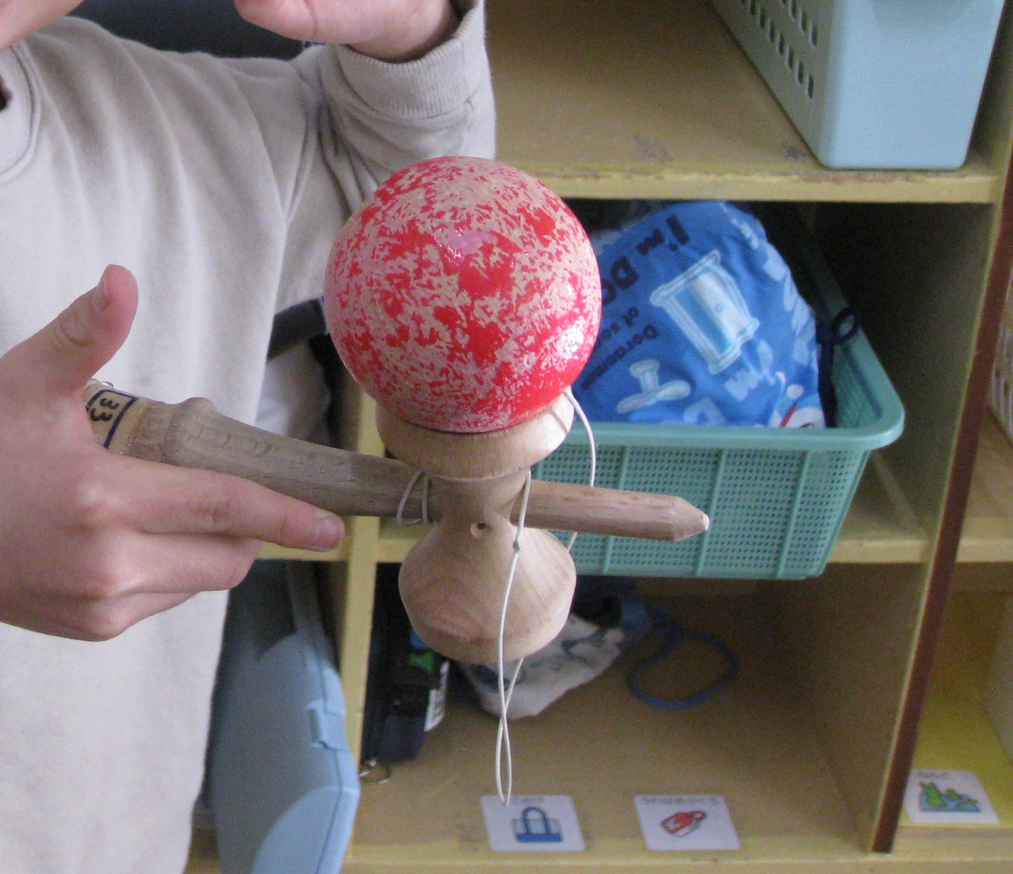1月9日には、室内でできるお正月遊びを行い、14日~16日では外でできるお正月遊びを行いました。室内では、けん玉や、こま、福笑い、お手玉で遊び、校庭では、竹とんぼ、竹馬、ぽっくり、羽根つきで遊びました。