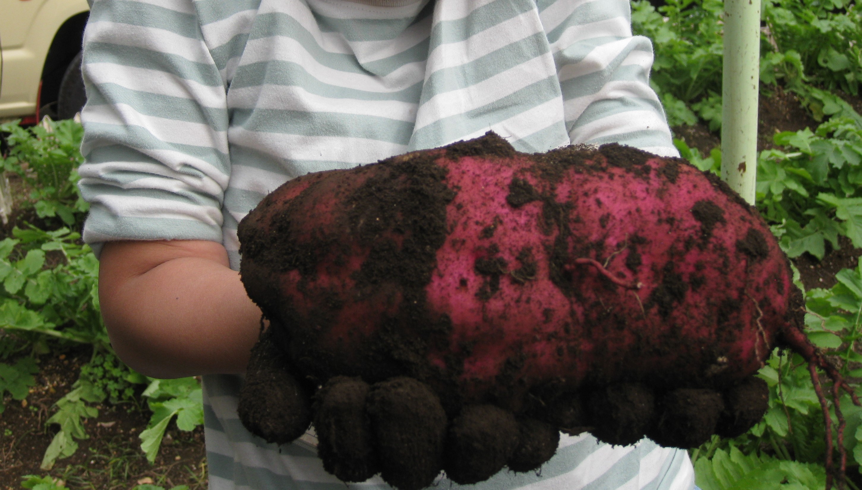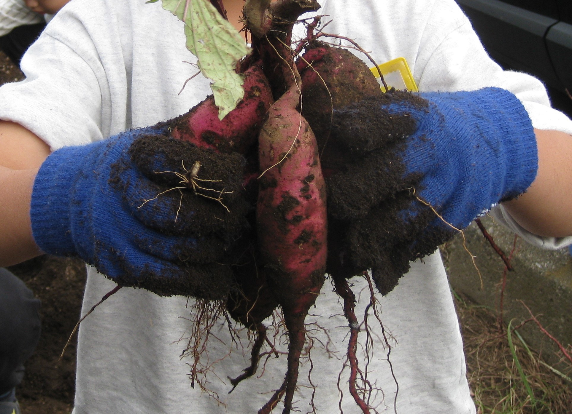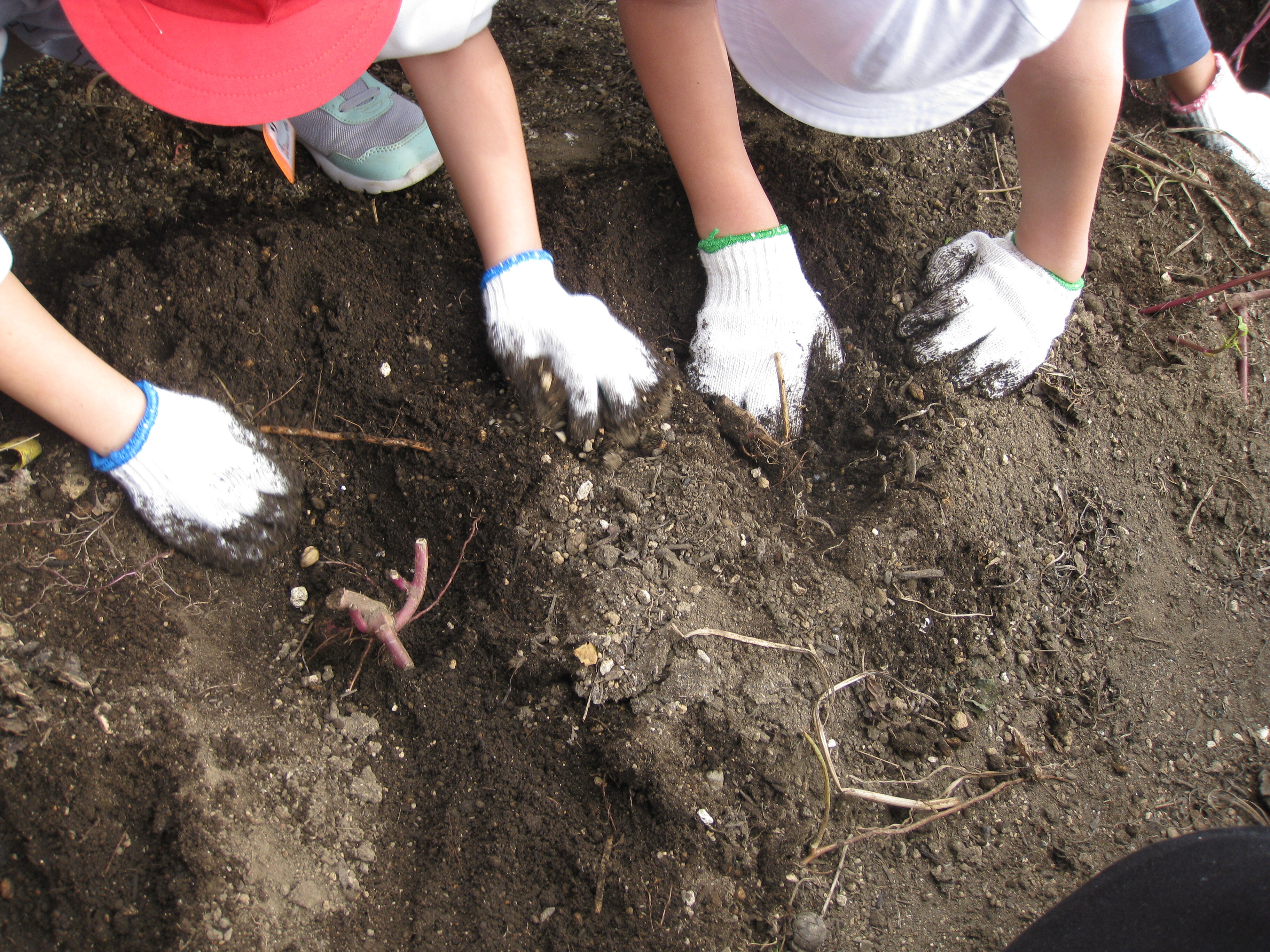 子どもたちは、さつまいもの大きさにびっくりしたり、喜んだりしながら、収穫していました。小さなものから大きなものまで沢山とれました!